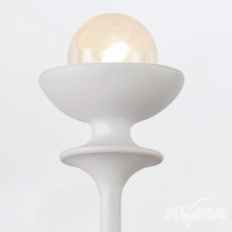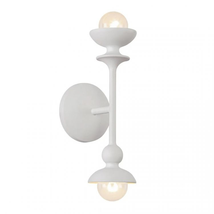 Kinkiet z 2 źródłami światła z kolekcji Cadence to graficzna forma inspirowana rzeźbą i rytmem. Smukła pionowa konstrukcja z kulistymi detalami i dwoma odsłoniętymi żarówkami emanuje lekkością i precyzją. Całość wykończona została w kolorze antyczna biel, który subtelnie rozprasza światło i dodaje całości artystycznego wyrazu. To idealna propozycja do wnętrz nowoczesnych, eklektycznych i art déco.