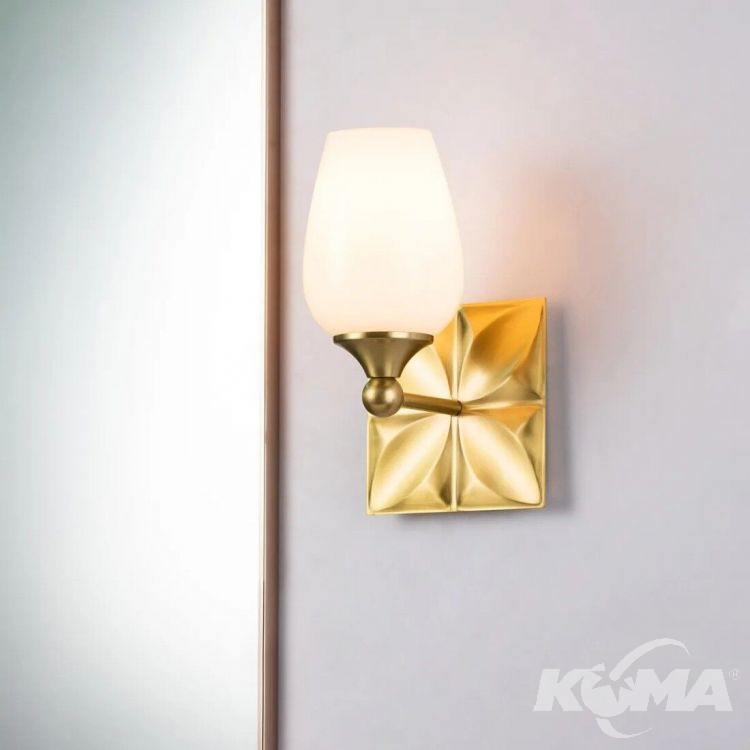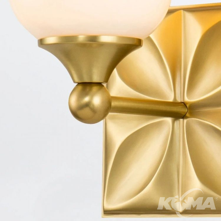 Kinkiet z kolekcji Epsilon wyróżnia się miękką, organiczną linią i subtelnym charakterem. Delikatny klosz w kształcie tulipana wykonany został z białego szkła opalowego, które rozprasza światło w przyjemny, nastrojowy sposób. Dekoracyjna rozeta na ściennej płytce oraz eleganckie wykończenie w kolorze postarzanego mosiądzu podkreślają kobiecy i ponadczasowy styl tej oprawy. Wykończenie: postarzany mosiądz