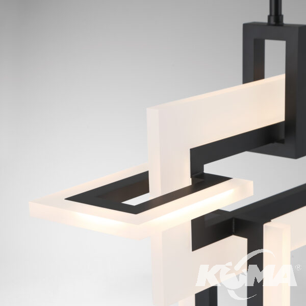 Nowatorska forma lampy opiera się na wielowarstwowych, prostokątnych modułach, które zachwycają zmiennością kształtu w zależności od kąta patrzenia. Matowa czerń nadaje całości surowego, industrialnego charakteru, a zarazem wprowadza nutę wyrafinowania. Konstrukcja została wykonana z wysokiej jakości metalu i tworzywa sztucznego, co gwarantuje trwałość i odporność na codzienne użytkowanie.