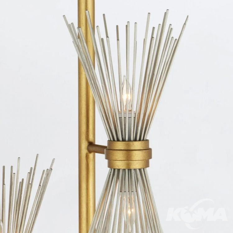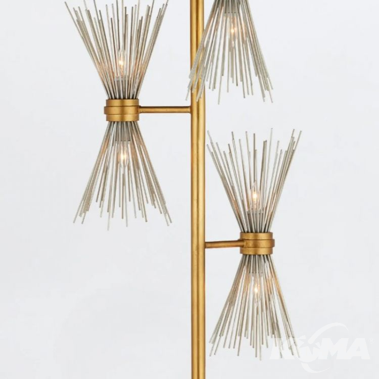 Lampa podłogowa Novatude z 1 źródłem światła to model pełen energii i kontrastów, zaprojektowany przez Toma Caldwella. Jej konstrukcja z metalu łączy dwa ekskluzywne wykończenia: ciepłe płatkowe złoto w podstawie i ramieniu oraz chłodne płatkowe srebro w detalach przypominających promieniste kolce. Smukła forma i odważna kompozycja sprawiają, że model ten doskonale odnajduje się w nowoczesnych wnętrzach, dodając im wyrafinowanego charakteru. Polecany do salonów, loftów i designerskich gabinetów.