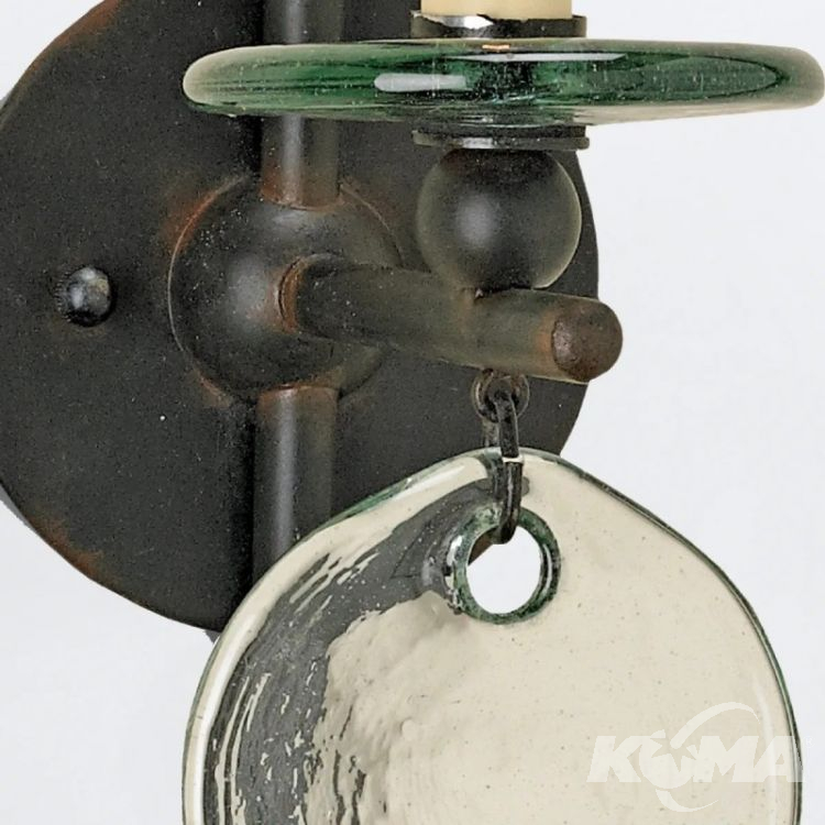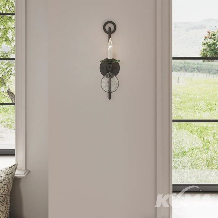 Kinkiet ścienny Sethos z 1 źródłem światła to subtelna wersja większych opraw z tej samej kolekcji. Wykonany z kutego żelaza w wykończeniu postarzane żelazo, wyróżnia się detalem w formie zawieszonego okrągłego dysku z przetworzonego szkła. Prosta, liniowa konstrukcja i surowy charakter materiałów przywodzą na myśl klasyczne lampy użytkowe w nowoczesnej odsłonie. Ten model doskonale pasuje do wnętrz rustykalnych, loftowych i inspirowanych stylem kolonialnym – zarówno jako światło akcentowe, jak i dopełniające większe kompozycje.