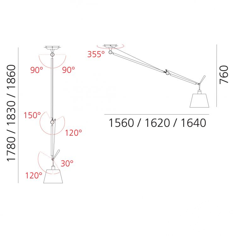 Jednym z charakterystycznych elementów lampy Tolomeo jest przegubowy system ramienia. Dzięki innowacyjnemu mechanizmowi sprężynowemu, lampa może być łatwo regulowana pod względem wysokości i nachylenia, co zapewnia dużą elastyczność użytkowania.