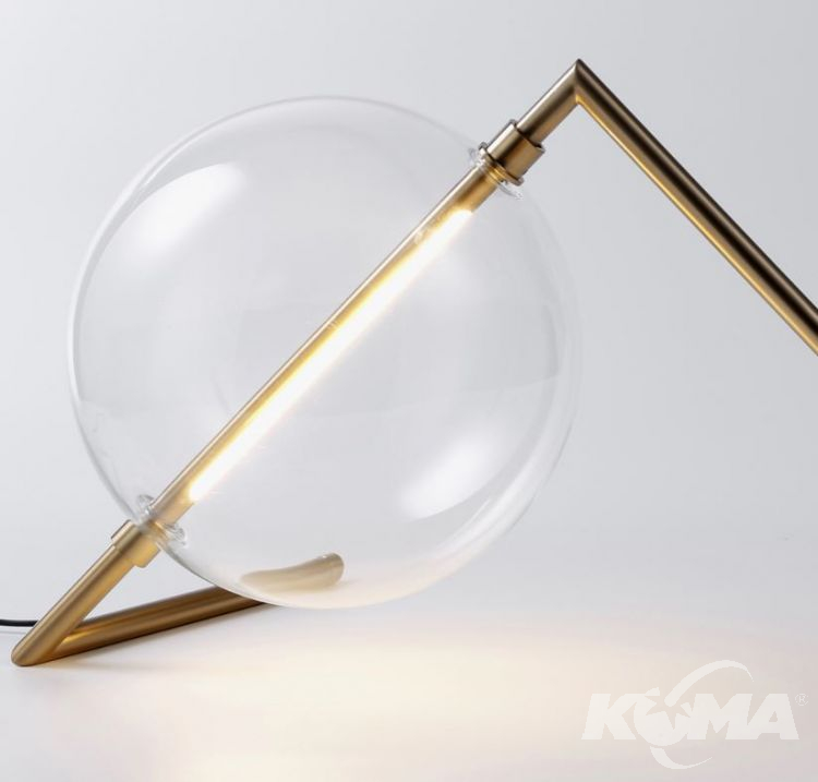 Jej delikatna, subtelna forma przyciąga uwagę, a duży szklany klosz harmonijnie dopełnia całość, skrywając energooszczędne źródło światła LED.