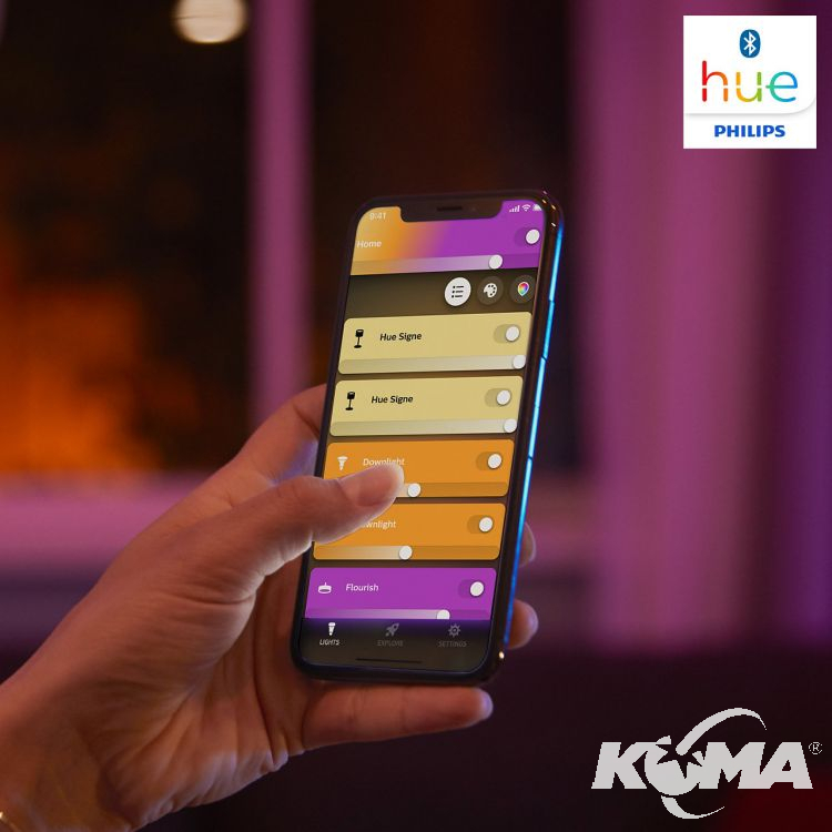 Steruj oprawą za pomocą aplikacji w smartfonie Bluetooth, lub odblokuj więcej funkcji kupując mostek Hue, który również jest dostępny w naszej ofercie.