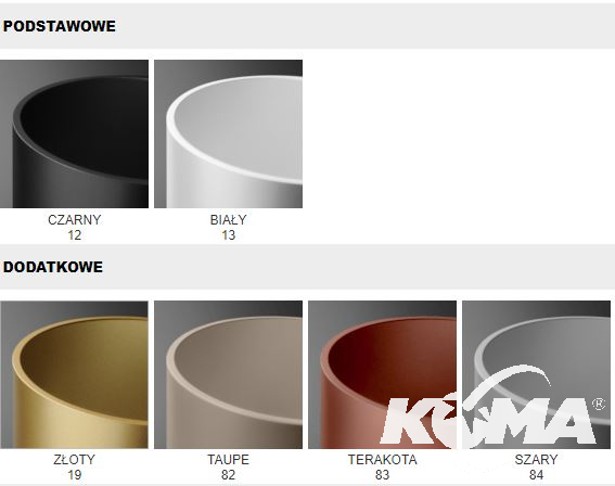 Lampy dostępne w kolorze czarny, biały, złoty, taupe, terakota, szary, brutal, burgundowy, piaskowy,