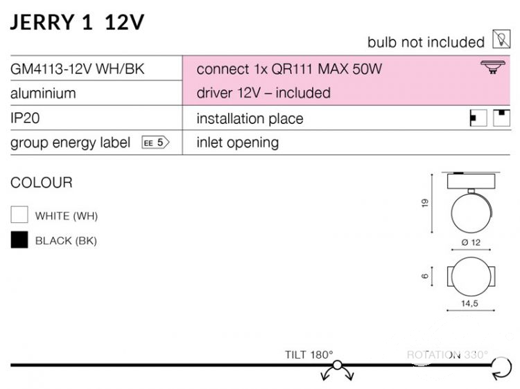 1 12V oprawa spot 1x50W qr111 (bez żarówki w zestawie)