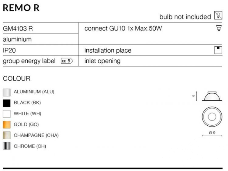 | Rodzaj trzonka żarówki: | GU10 |