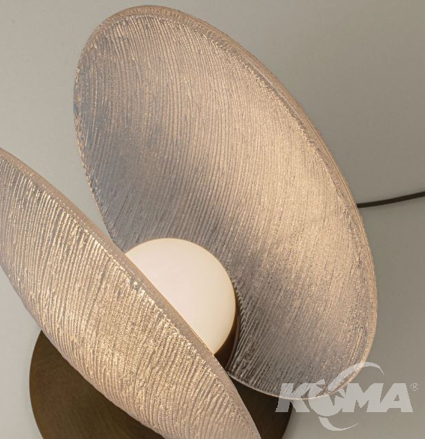 Lampa stołowa SHELINA - kolorze antycznego mosiądzu zachwyca subtelną, dekoracyjną formą. Jej transparentny, owalny klosz - wyraźną strukturą szkła nadaje oprawie lekkości, - detale - odcieniu mosiądzu wprowadzają szlachetny, klasyczny akcent. To propozycja, która łączy delikatność materiałów - wyrazistym designem, tworząc efektowne oświetlenie do eleganckich wnętrz.